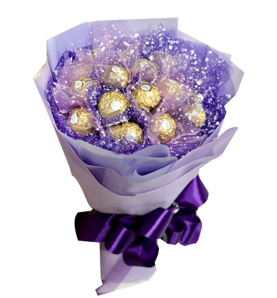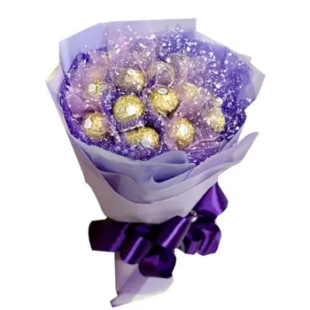 One Dozen of Ferrero Rocher Chocolates with mini teddy bear in Bouquet