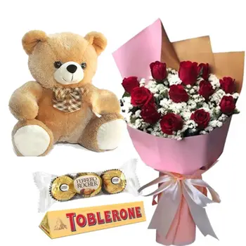 Then this is the perfect gift! The 1 Dozen of Red Color Roses in a Beautiful Bouquet with Toblerone 100g Chocolate Bar and 3 Pcs. Ferrero Rocher Chocolate Pack and small-size teddy bear are sure to put a smile on their face.