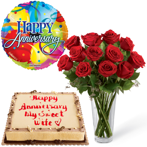 12 Red Roses with Cake and Balloon [CLONE]