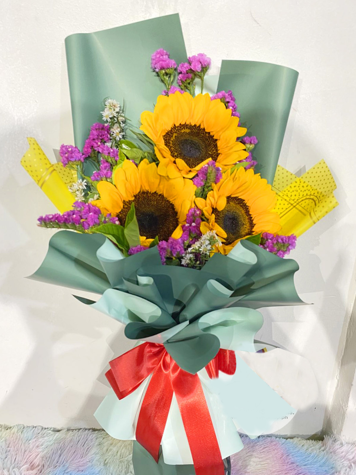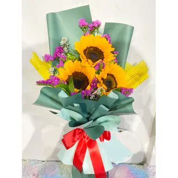 Our 3 PC Sunflower in Bouquet is the perfect way to brighten someone's day. These cheerful flowers are sure to bring a smile to the recipient's face. Plus, our sunflowers are grown in the Philippines, so you can be sure they're fresh and beautiful.